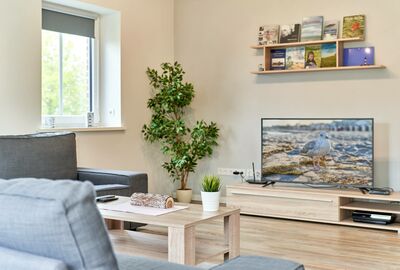 Im Erdgeschoss erwartet Sie ein großzügiger, offener Wohn- und Essbereich, der perfekt für gemeinsame Stunden mit Familie oder Freunden geeignet ist. Die großen Fensterfronten lassen viel Tageslicht herein und bieten einen herrlichen Blick in den Garten. Die bequeme Sofaecke lädt zu gemütlichen Abenden ein, sei es mit einem guten Buch oder einem spannenden Film. Ein Flachbild-TV sowie kostenfreies WLAN sorgen für Unterhaltung.