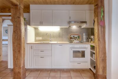 Wohnbereich mit offener Küche, in dem man gemeinsam kocht, lacht und den Tag ausklingen lässt.