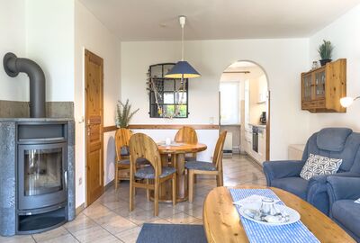 Im Inneren öffnet sich ein großzügiger Wohn- und Essbereich, der schnell zum Mittelpunkt Ihres Urlaubs wird.