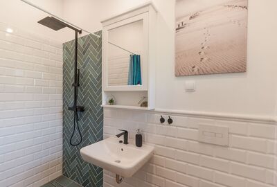 Familie oder Freunde. Das moderne Duschbad mit bodengleicher Dusche sorgt für zusätzlichen